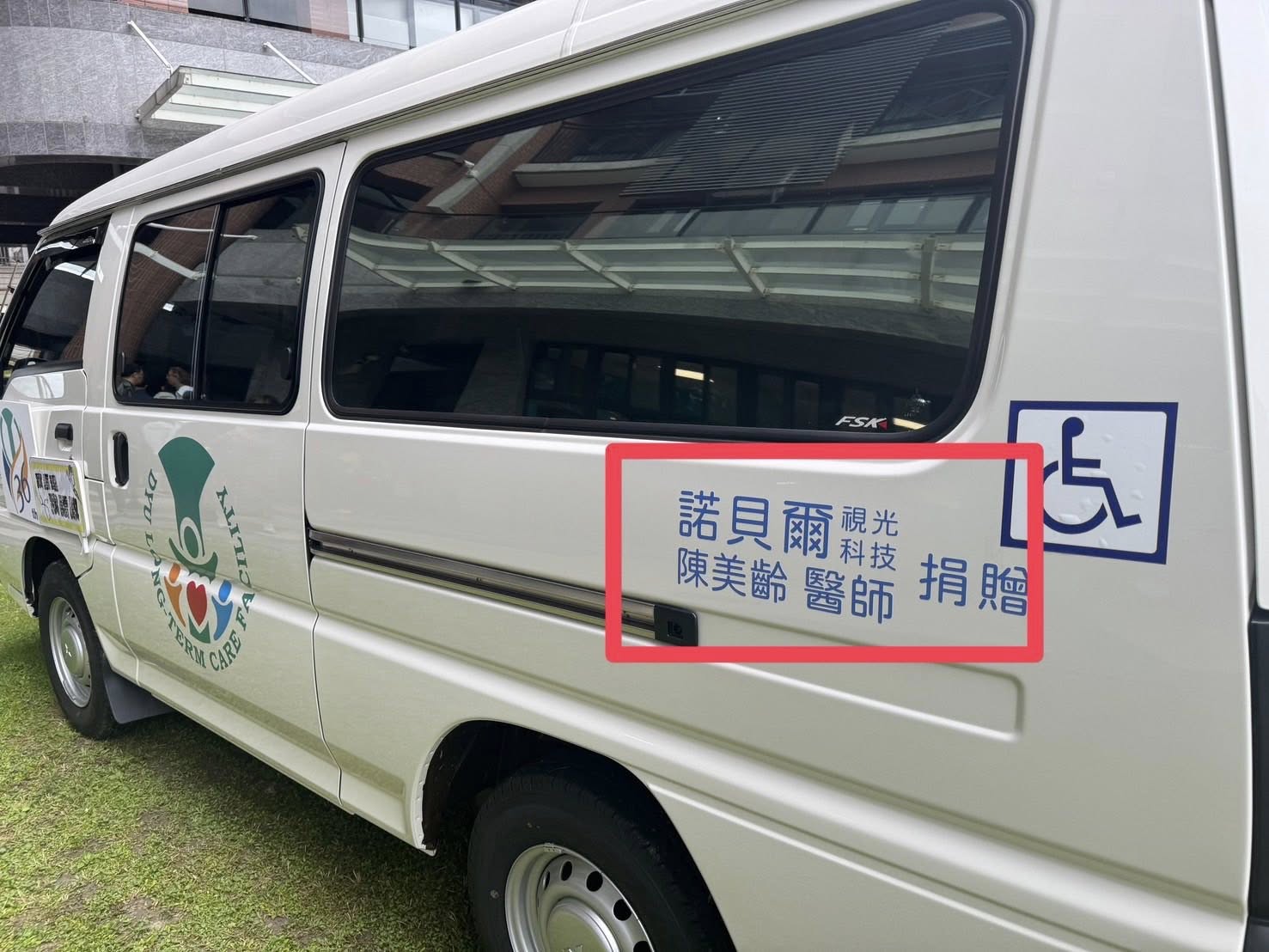 諾貝爾視光科技公司捐贈了「公益福址車」給大葉大學「社區長照機構」,提供社區「高齡或殘障人士」公益使用
